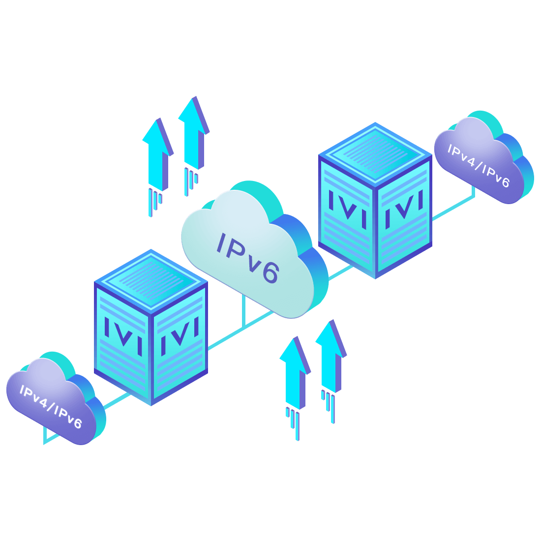 對正在進行IPv6整體升級規(guī)劃的運營商,應(yīng)用IPv6升級方案2.5,通過IVI無狀態(tài)翻譯技術(shù)和純IPv6接入網(wǎng)絡(luò),為雙??蛻舳撕碗p棧服務(wù)器提供連通服務(wù)。